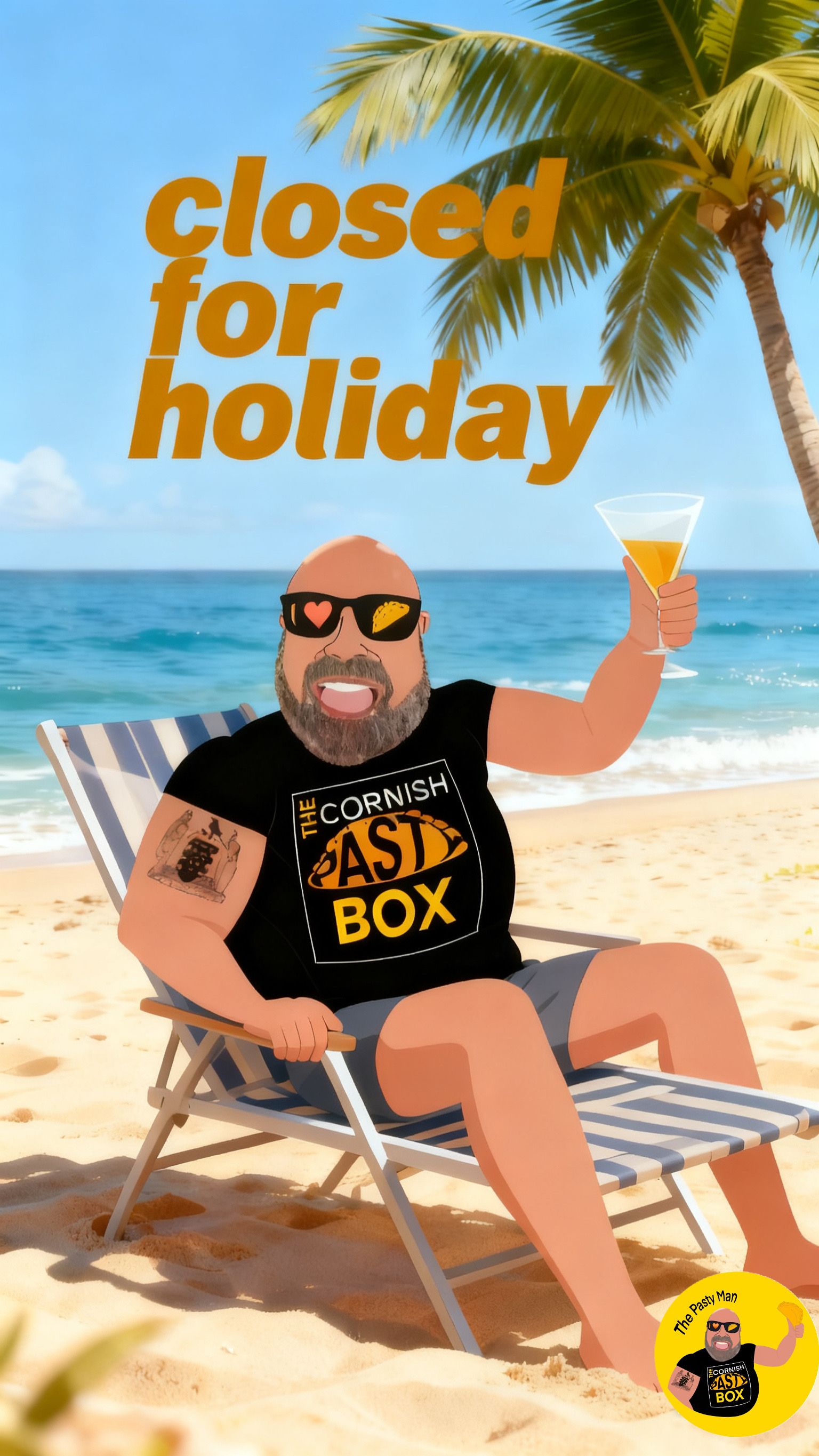 | Warehouse open 10am - 4pm, Hot pasties until 3pm | Warehouse open 10am - 4pm, Hot pasties until 3pm | Warehouse open 10am - 4pm, Hot pasties until 3pm | Warehouse open 10am-4pm, Hot pasties until 3pm | Warehouse open 10am - 4pm, Hot pasties until 3pm, Pre-ordered hot delivery 11:30am-1:30pm | Warehouse open 10am - 2pm, Hot pasties until 1:45pm | Closed |